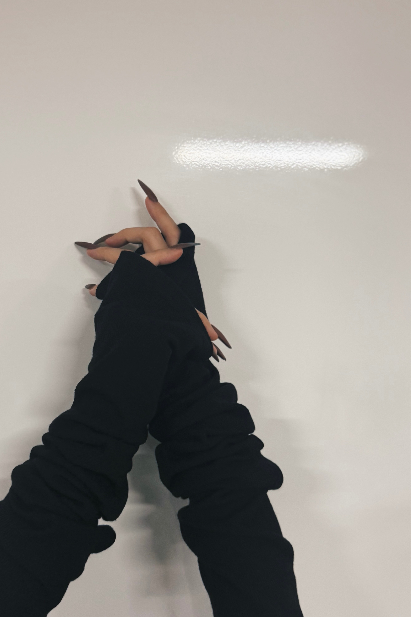 大胆に背中が開いたバックシャンなデザインと、胸元の深いカットで視線を奪うパッド付きニットドレス。伸縮性抜群のニットはアシンメトリーに入ったドレープがボディラインを美しく引き立て、気になる下腹部分はさりげなくカバー。ネックにはリボン状のコードが付き、結び方次第で雰囲気を自在にコントロール可能。フィンガーホール付きのセットのアームウォーマーを合わせれば、よりエッジィで洗練された印象に。一枚で視線を奪う、REVIRAL’らしいセクシーと強さを兼ね備えた主役級ワンピース。
