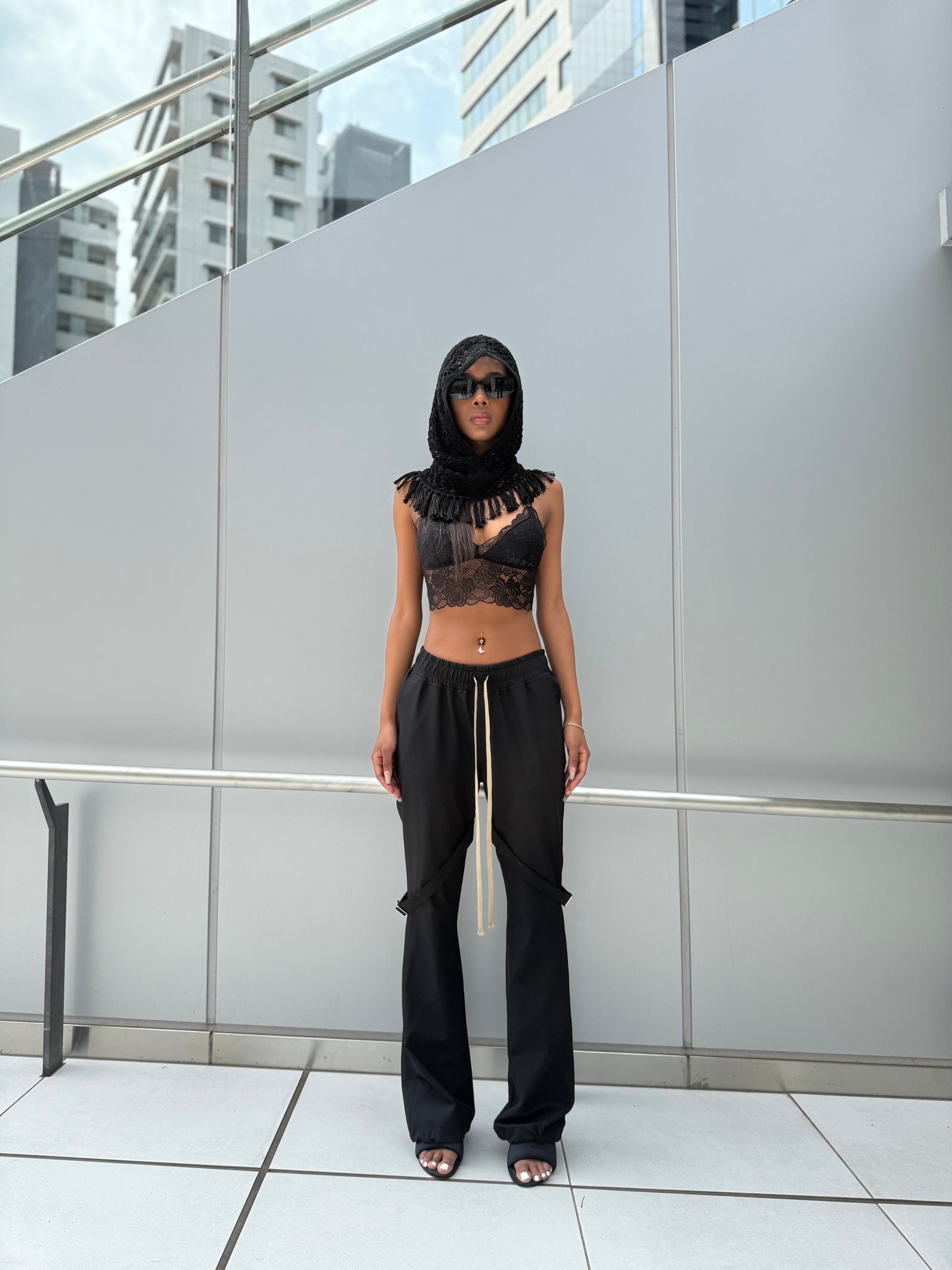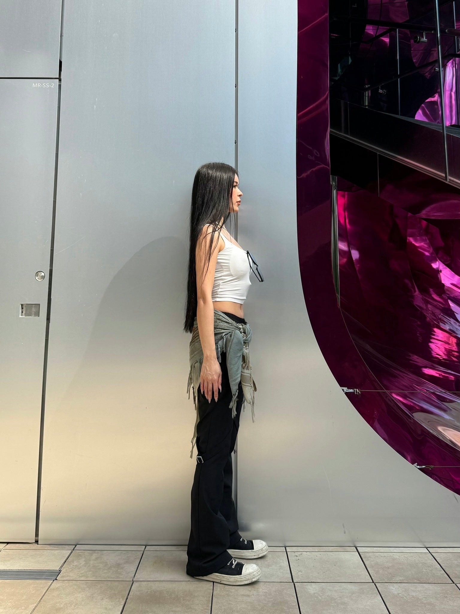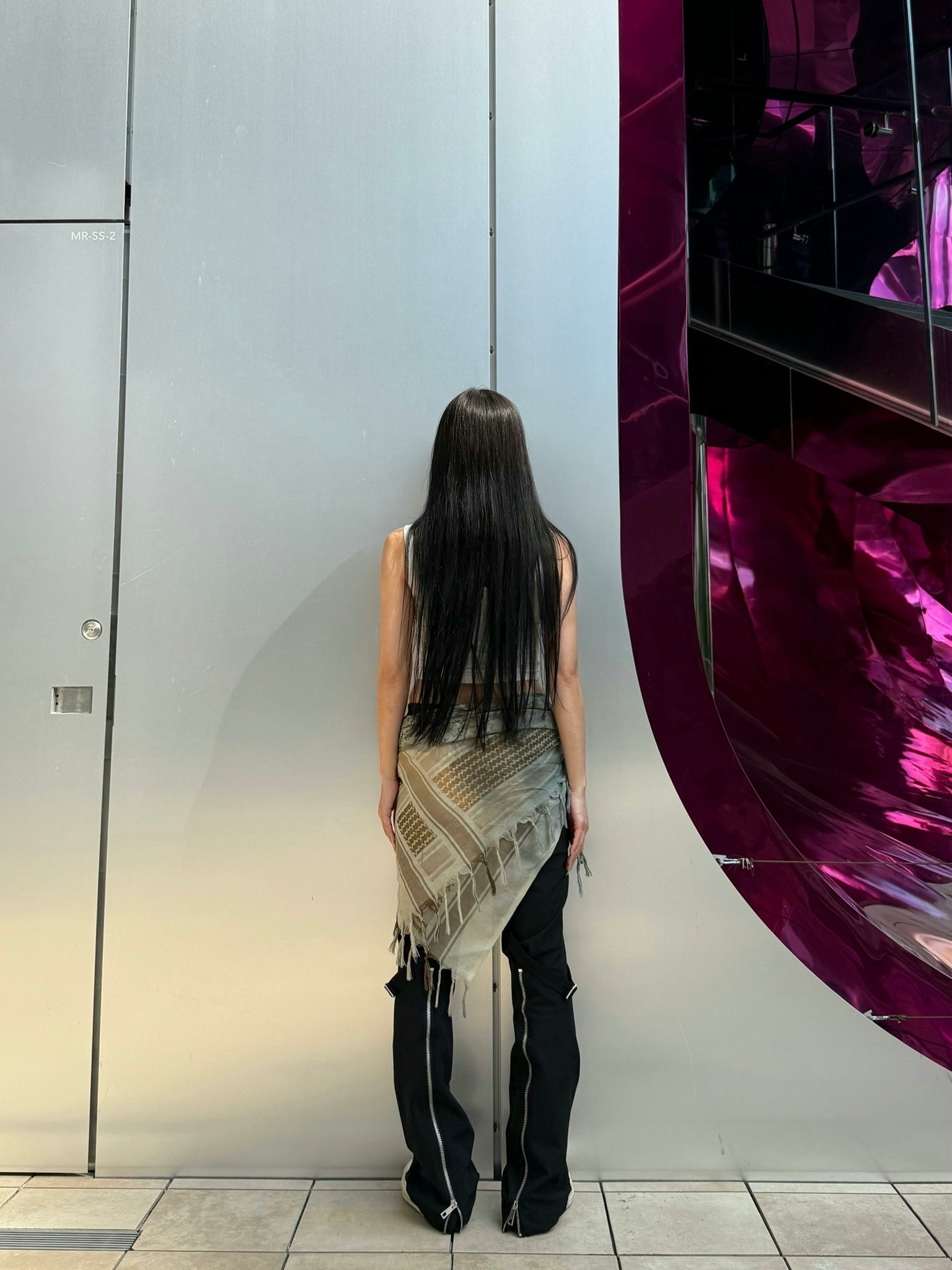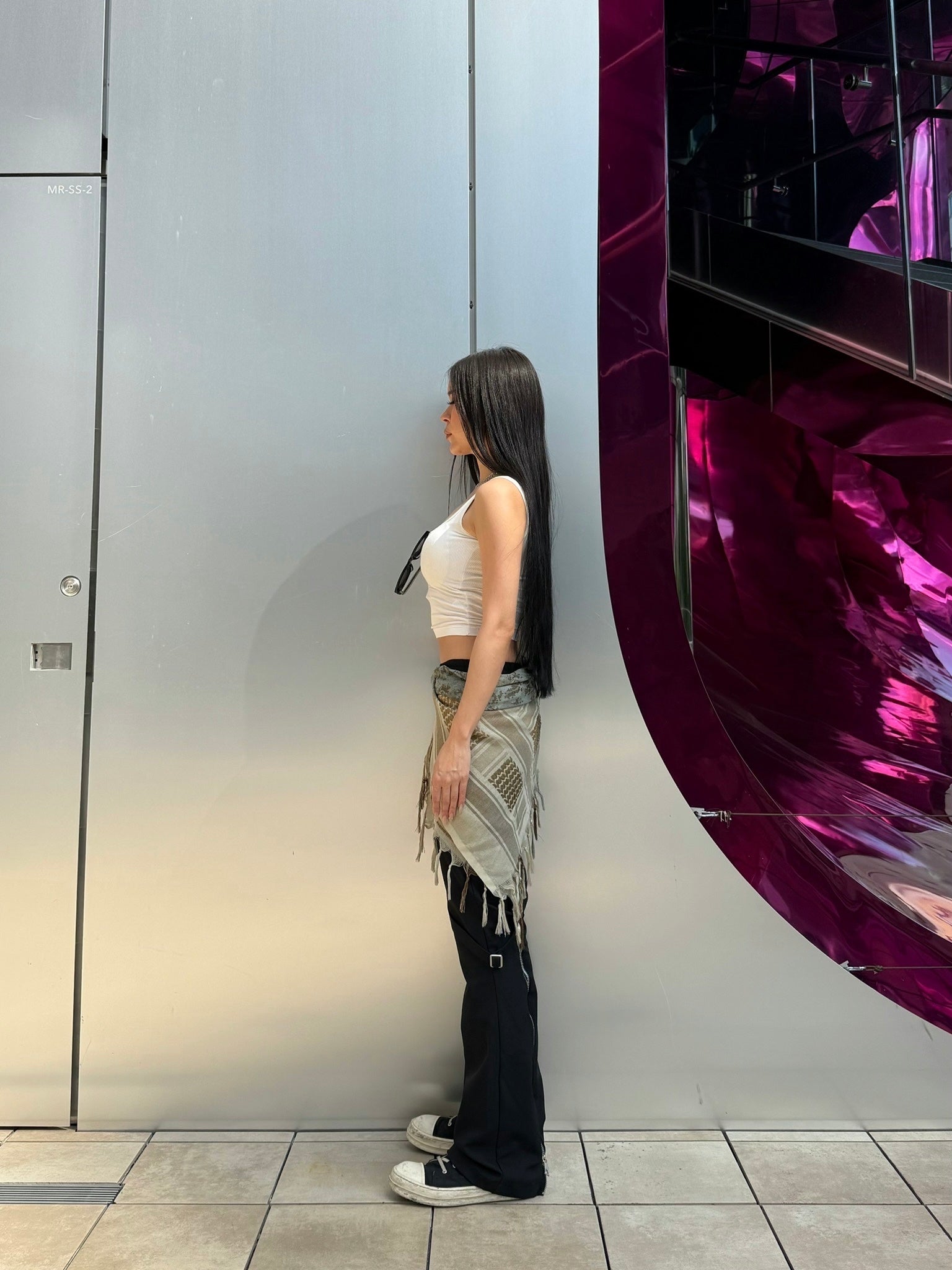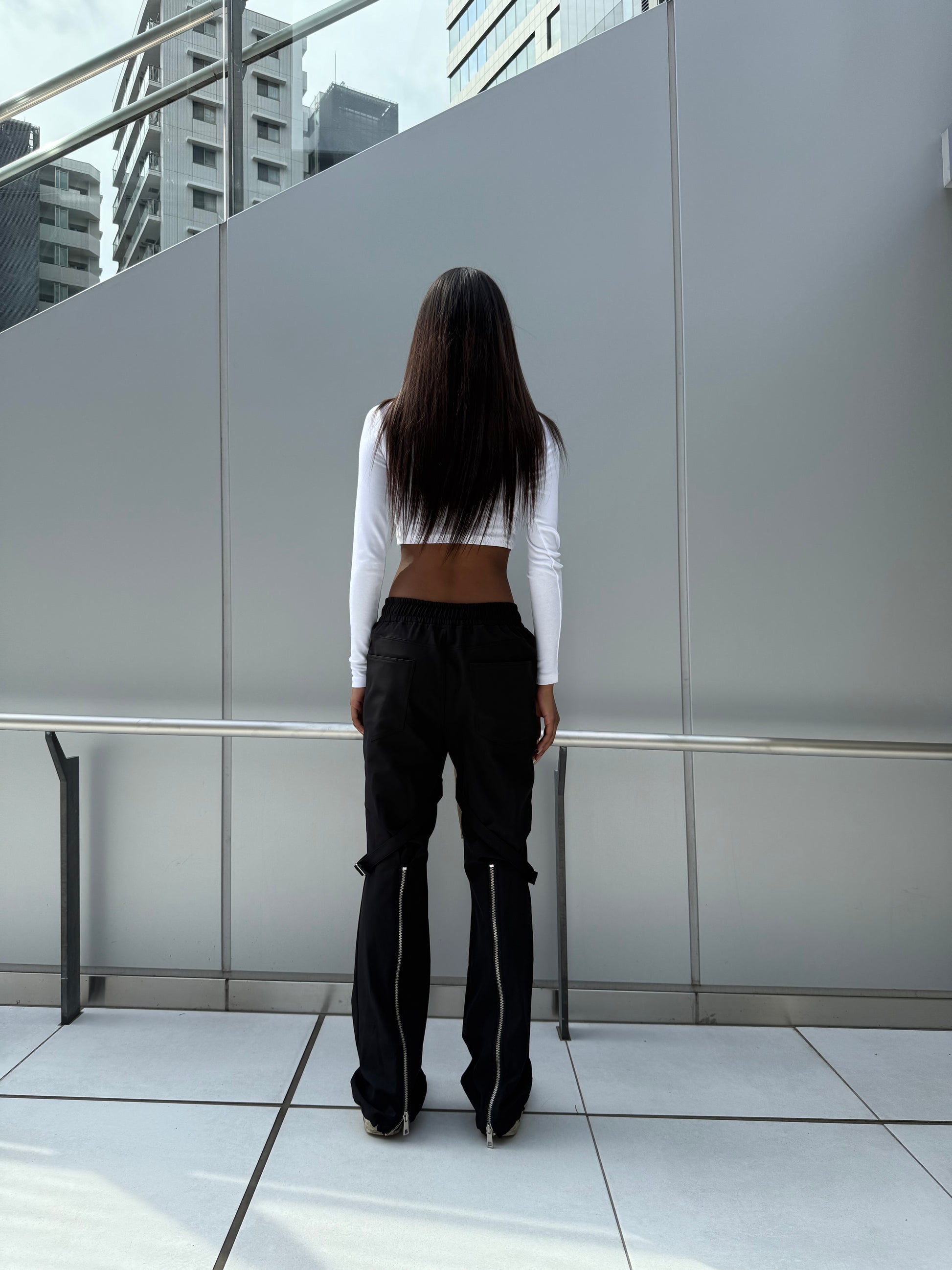大胆に広がるフレアラインが描く、美脚シルエットパンツ。太ももに配したベルトが緩急を生み出し、膝下からの自然な広がりが脚を長く、細く魅せる設計。裾にはアジャスターを内蔵し、たまりの調整が可能。引きずらない丈感をキープしながら、低身長でも美しく穿きこなせる。バックスタイルにはMA-1と同仕様のジップディテールを施し、視線を惹きつけるアクセントに。一見シンプルでありながら、穿いた瞬間にその完成されたシルエットの良さが実感できる、REVIRAL’らしい力強くも洗練された一本。
