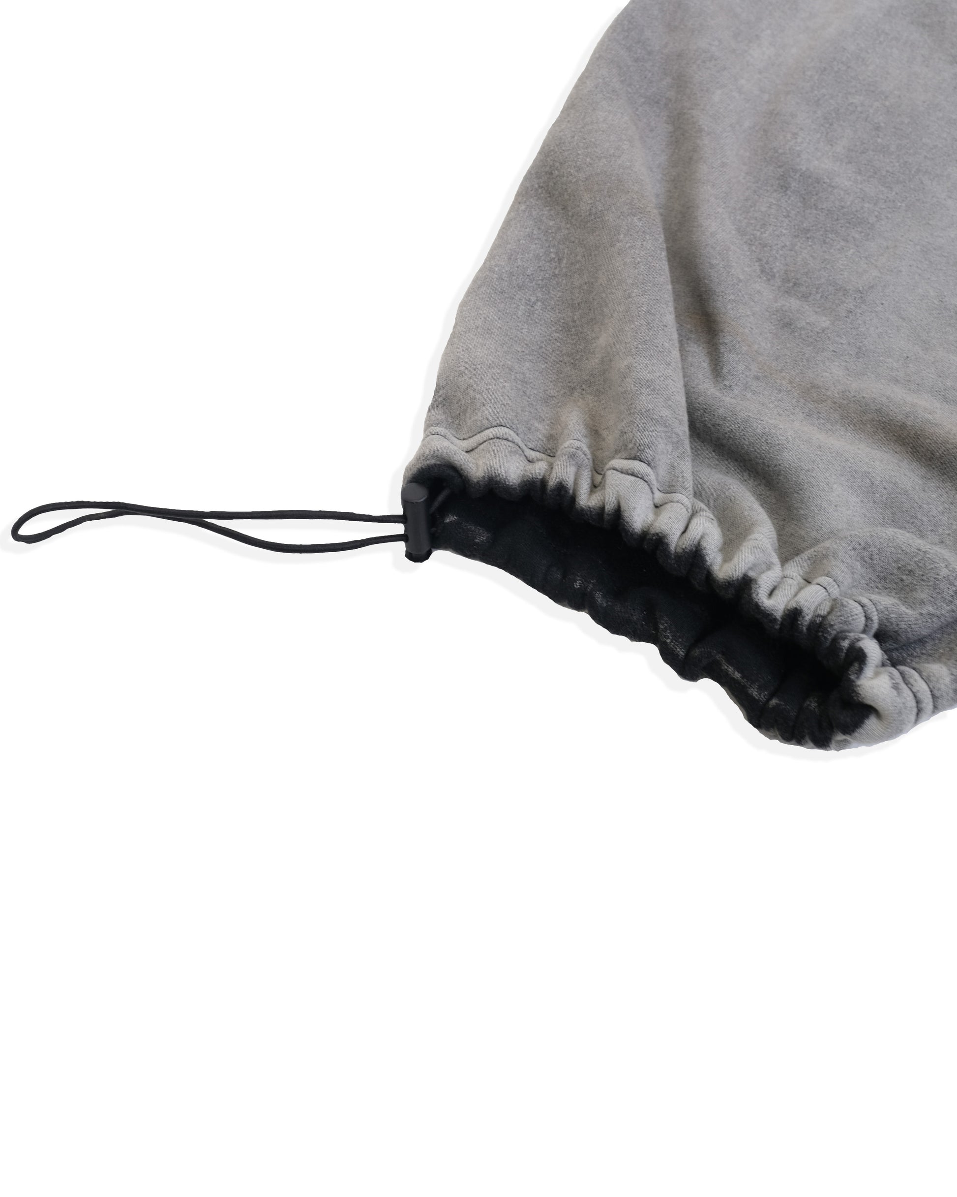そこまでオンスの分厚くない肌触りのいい生地感、パンツのリブ部分にはアジャスターがついており、キュッと閉めてパラシュートパンツシルエットにも対応可能です。