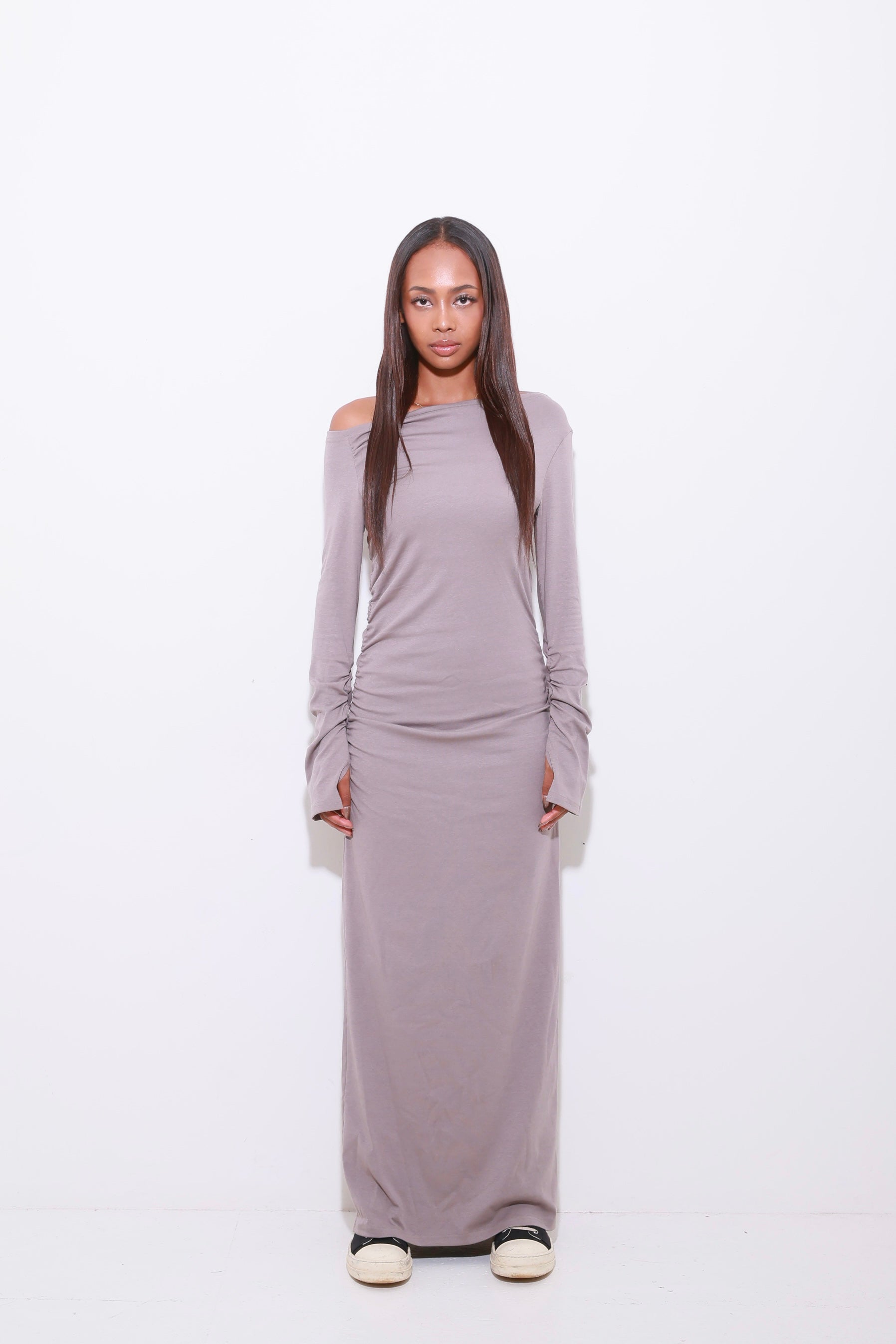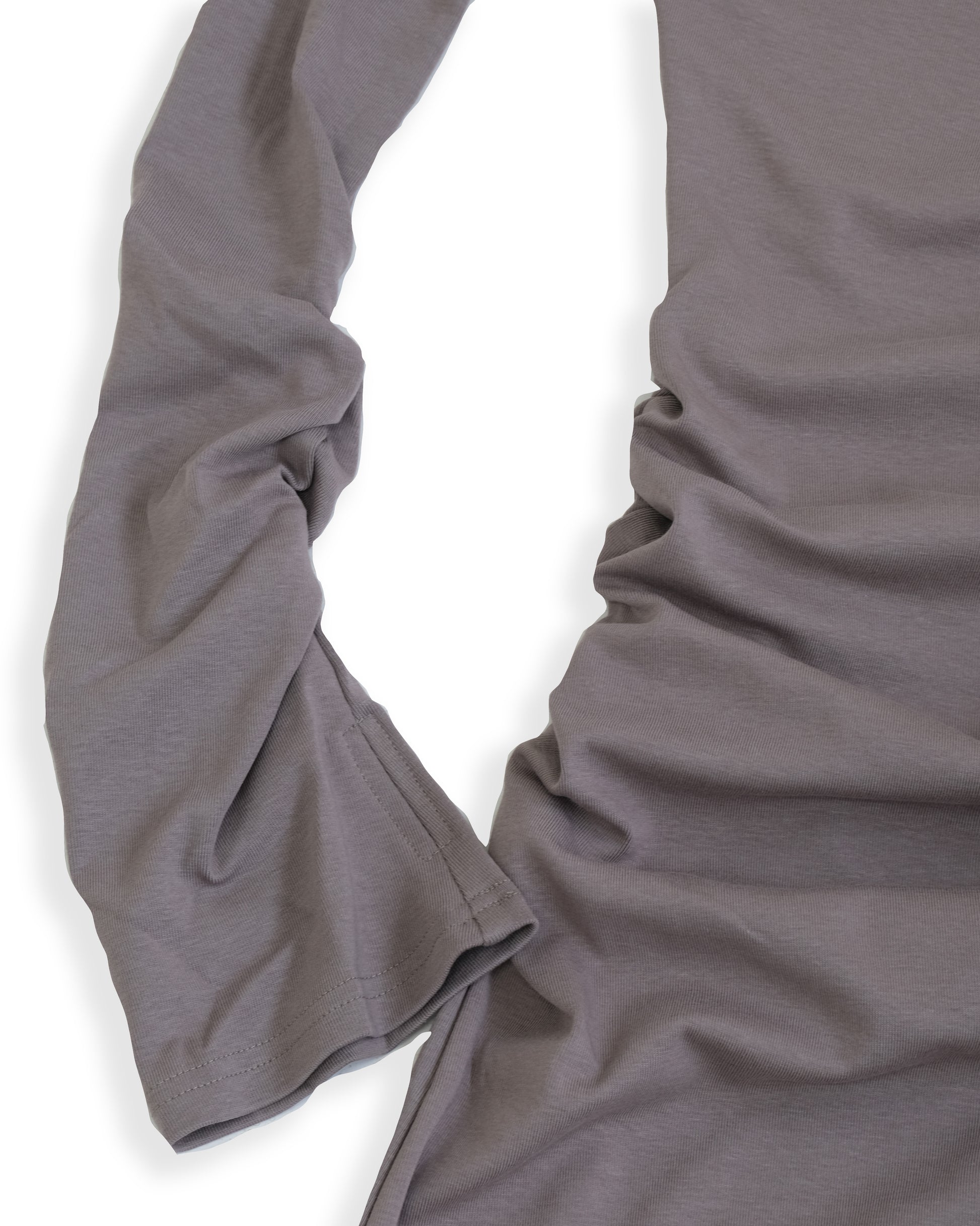 去年完売のワンピースが再販決定。新色にチャコールグレーが入荷しました。国産素材を使用し、国内で生産された日本製ワンショルダーワンピース。伸縮性に優れたコットン素材のモダール生地を使用し、美しいBODYラインを演出。腰回りと腕に複数のギャザー。袖口にはフィンガーホール付いており寒い時期でも指が出せるデザイン。REVIRAL‘で一推しの即完ワンピースです。