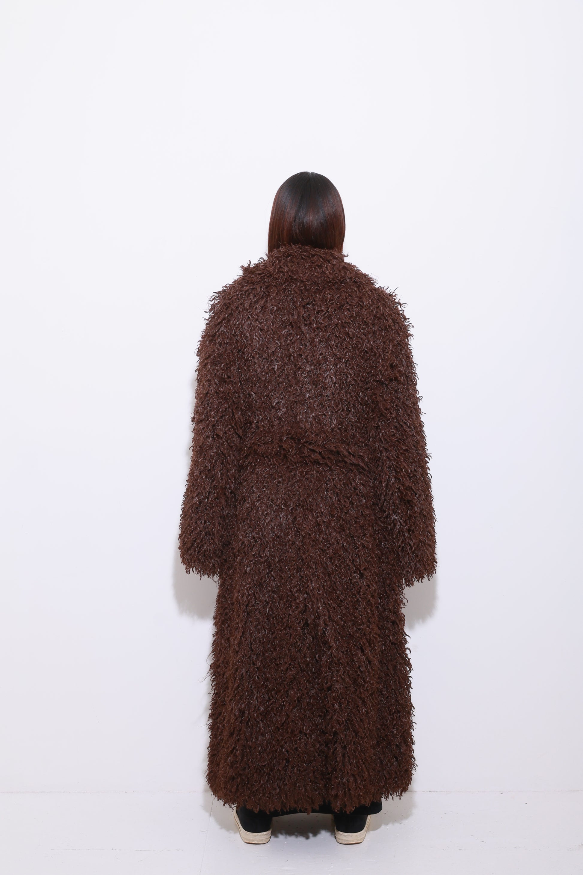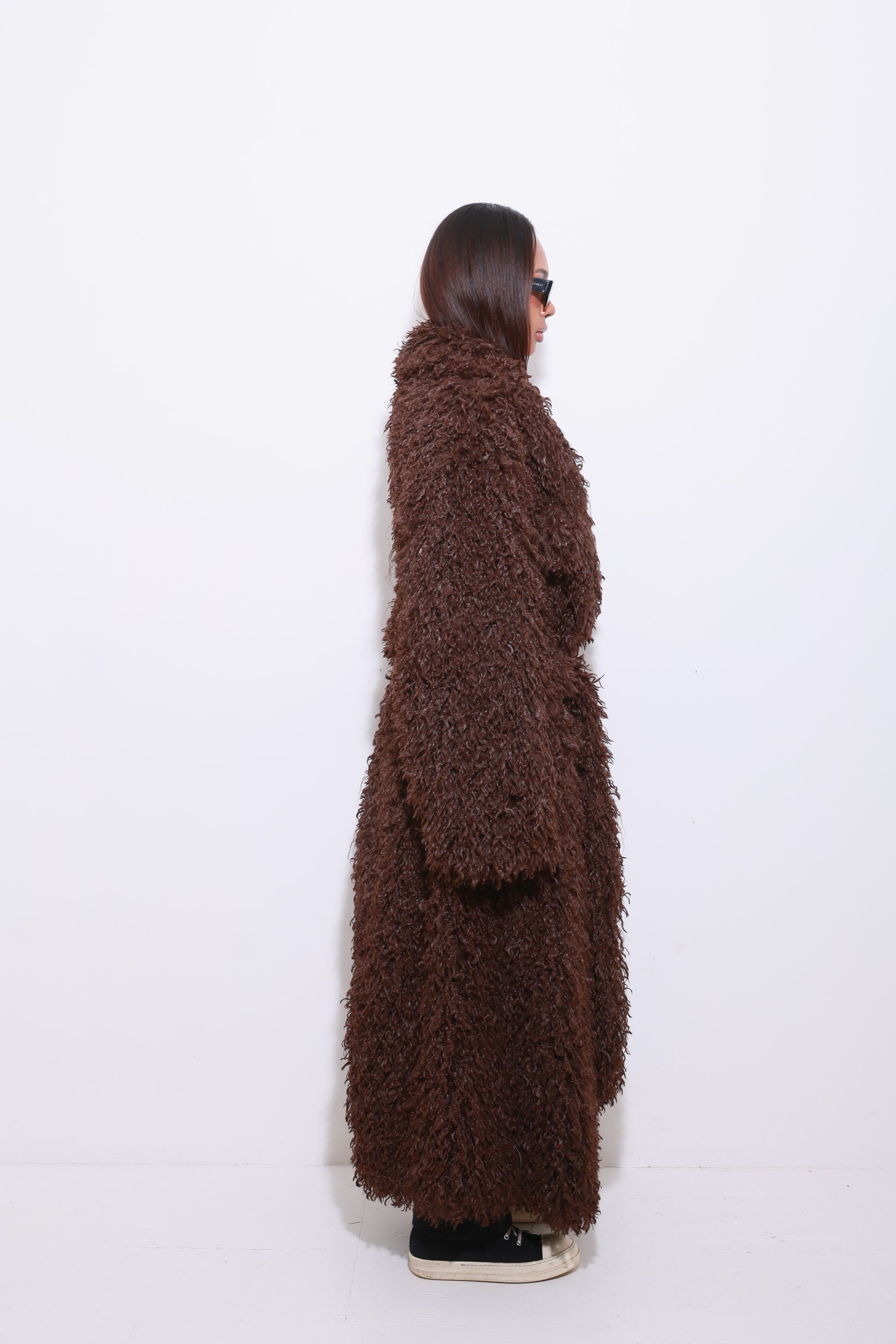 ふわふわの質感とボリューム感が今期流行りのアイテム。付属のコードでお好きなシルエットに調節可能。ロング丈の柔らかいシャギー素材とバスローブのようなシルエットが、海外セレブのようなゴージャスさと上品さを兼ね備えています。シンプルなでデザインながらも存在感があるので、エレガントにもカジュアルにも着こなせる秋冬のコーディネートにぴったりです。