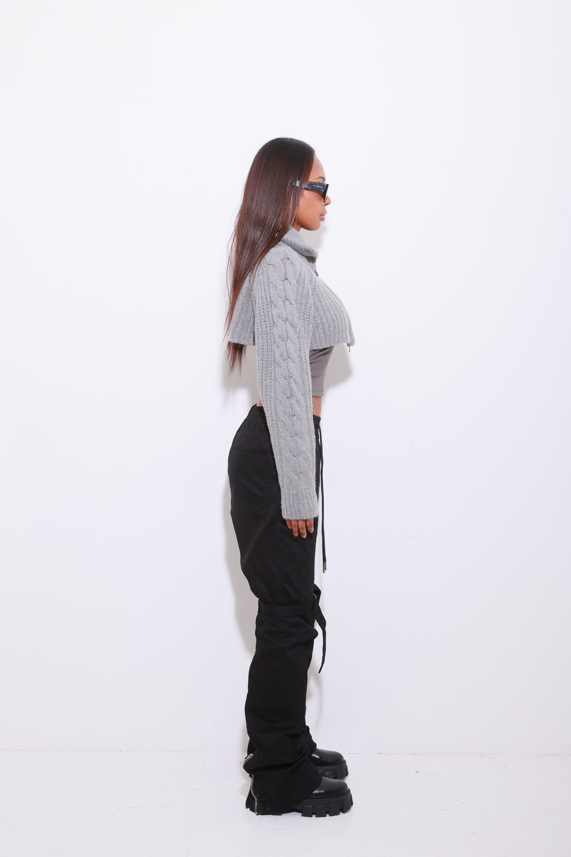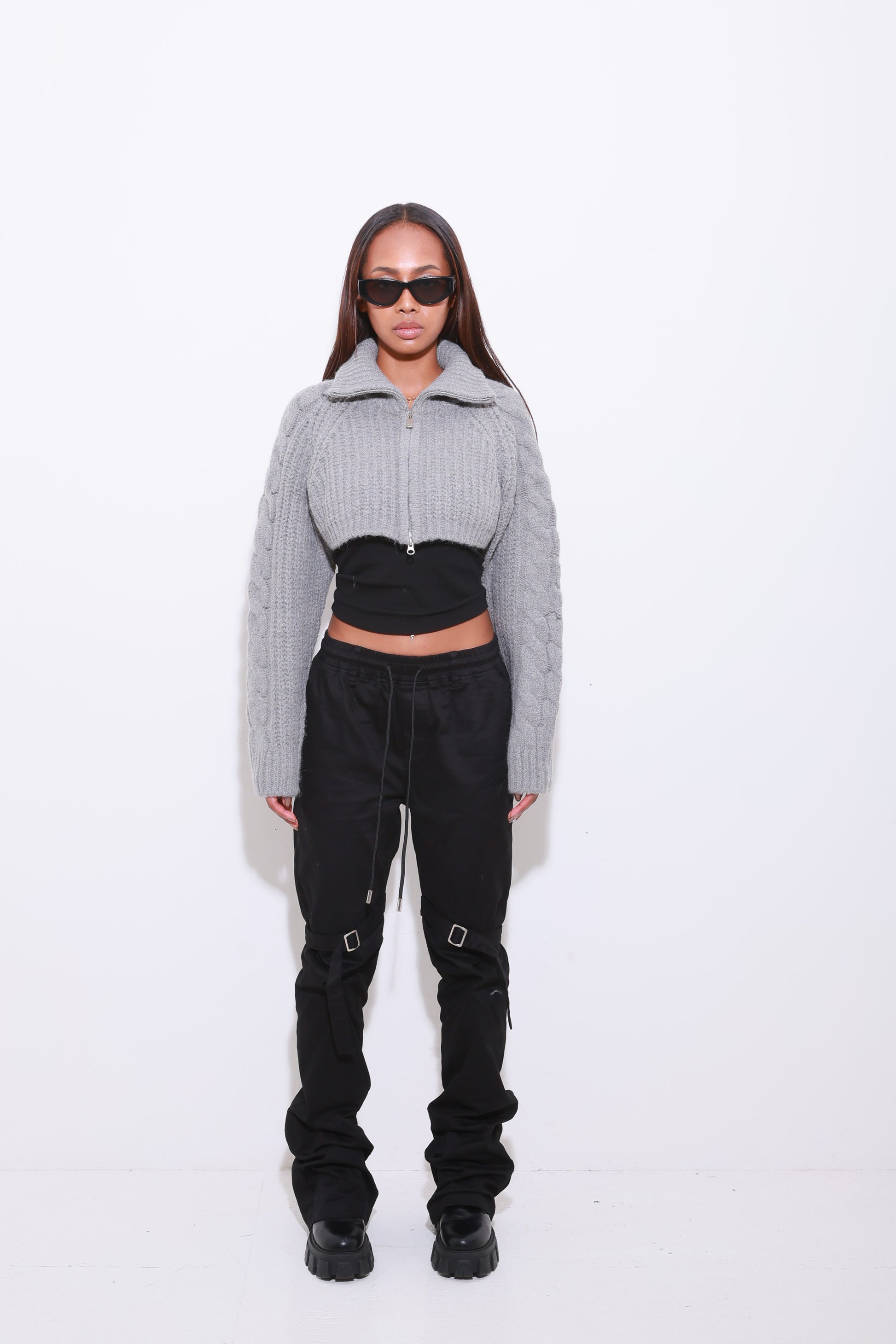 TURTLENECK ZIP UP SHORT KNIT